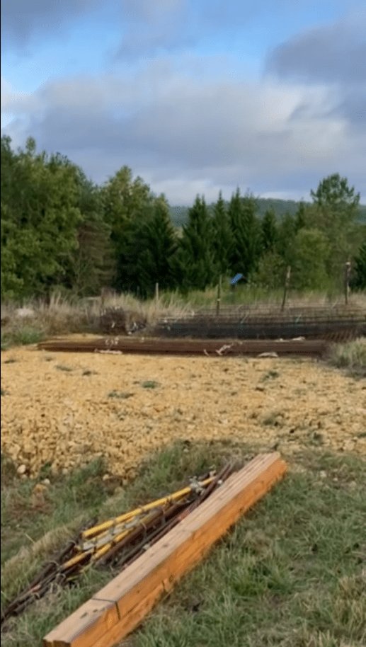 And what do I see? This pile of wood arrived about ten days ago. It seems like all the materials for laying the concrete are here. I guess they’re finally getting serious about starting. It’s only taken them seven years…