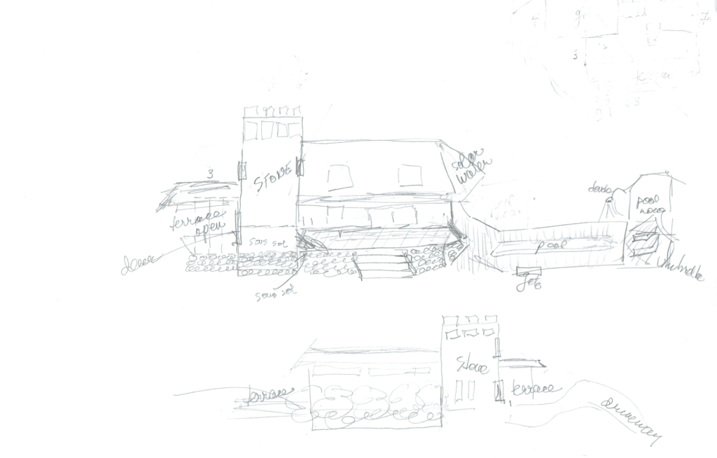Nadat ik de grond eind 2015 had gekocht, maakte ik meteen deze kleine potloodtekening van mijn ‘droomhuis’.